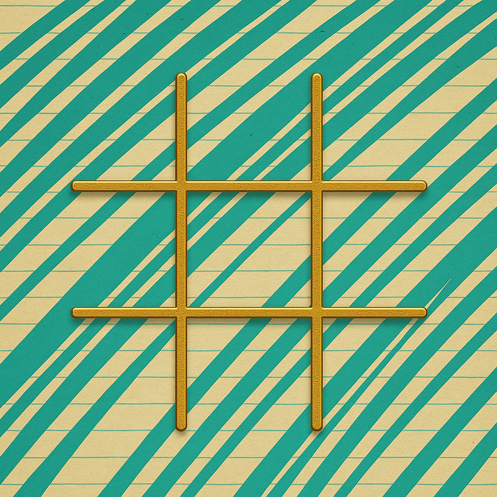 ✔️ 3x3 Tic-Tac-Toe board with graffiti speech bubbles and bossy brainiac characters